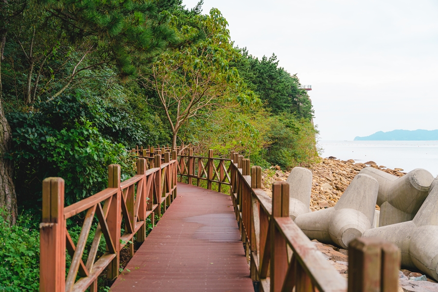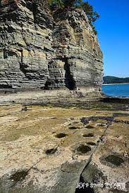 공룡길은 남쪽의 쪽빛 바다와 함께 걷는 남파랑 길에도 포함되어 있어요. 부산 오륙도 해맞이공원에서 전남 해남 땅끝마을까지 이어지는 걷기 여행길로서, 해변길에는 밟아 울퉁불퉁한 표면구조를 가진 공룡들의 발자국이 남아있어 이색적인 볼거리를 제공합니다. '층리'라는 지층의 줄무늬도 구경할 수 있어요.